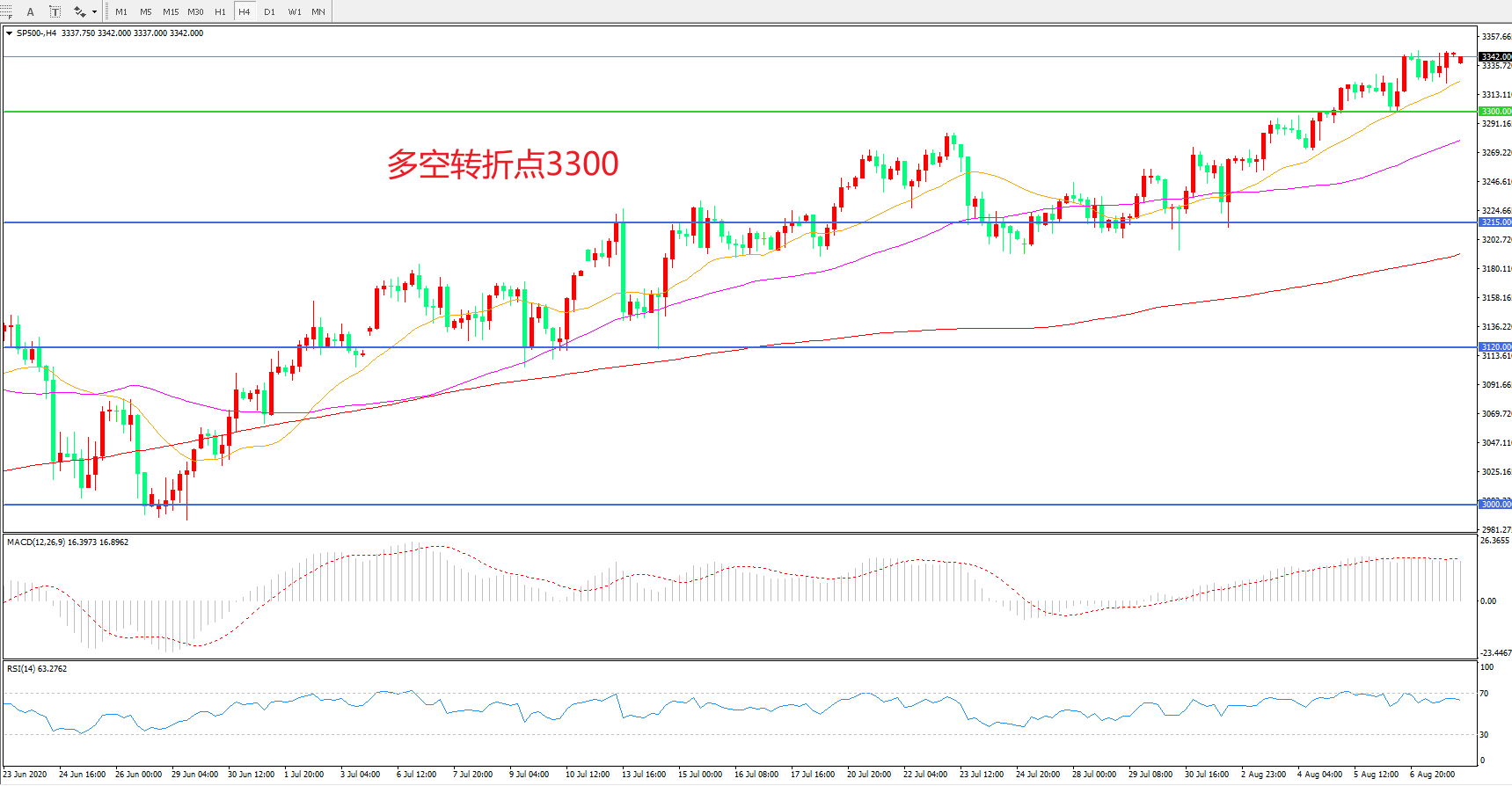 上周五(8月7日),美国劳工部公布最引人关注的数据, 7月非农就业人口增加176.3万,远好于市场预期,市场风险情绪受到提振,标普500大幅反弹,收报3344.75点。然而展望近期形势,美国新冠肺炎疫情、上市企业盈利、宏观经济前景均存在一定不确定性,因此对于美股未来走势判断应保持一定的谨慎。