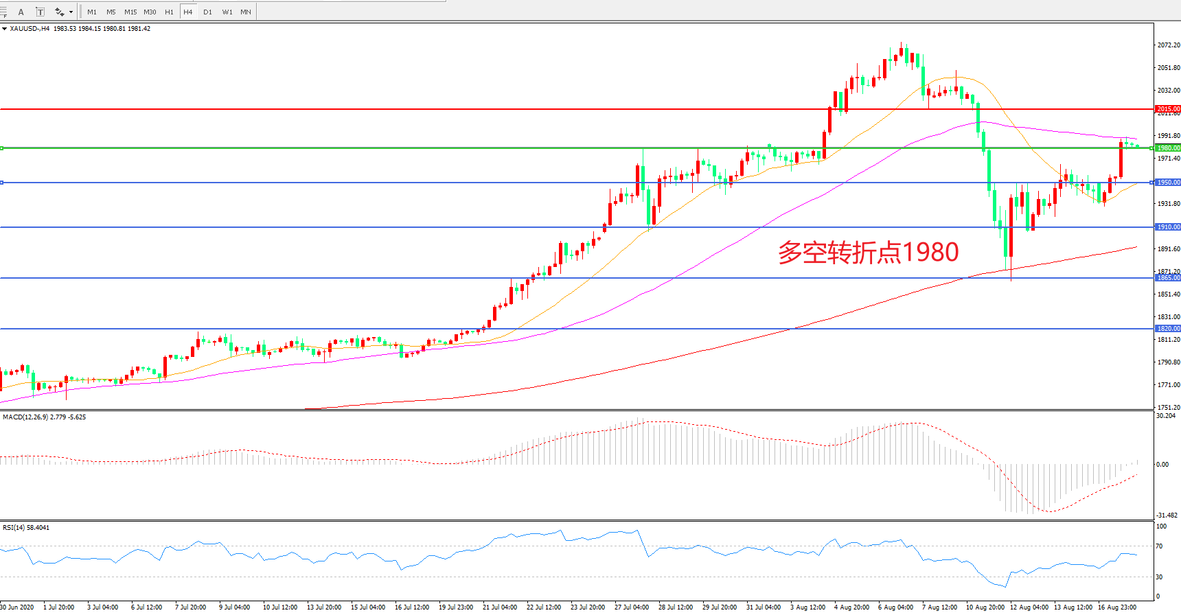 现货黄金XAU/USD    4小时图