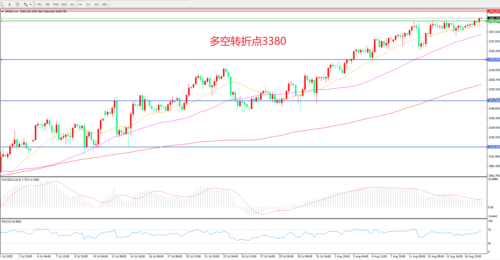 多空转折点:3380.00