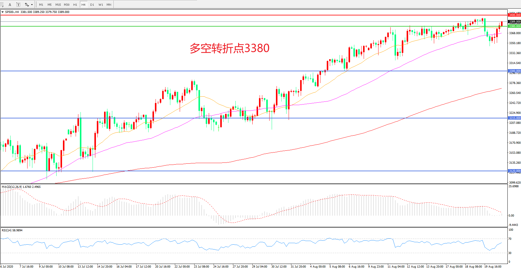 多空转折点:3380.00