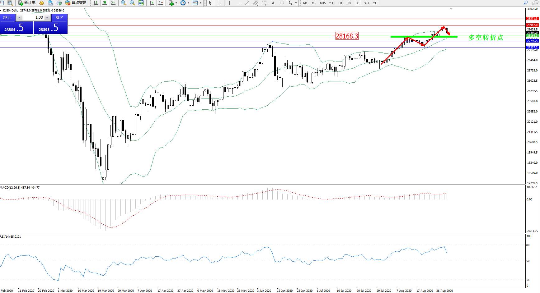 道琼斯指数8月31日(周一)收盘下跌223.80点,跌幅0.78%,报28430.05点。美国股市多数股票收盘下跌,道琼斯工业平均指数领跌,此前该指数调整成份股;1股拆4股之后,苹果股价飙升,交易员对全球经济复苏和科技股的无情上涨感到欣慰。美联储副主席Richard Clarida为在某个时候实施国债收益率控制措施留下了可能性,尽管他表示现在不太可能采取这种行动,并重申央行拒绝负利率。随着全球主要经济体从疫情相关封锁措施中的复苏非常缓慢,市场燃料仍可能供应过剩。需求问题没有显示出任何真正改善的迹象。投资者正在根据上周四美联储主席鲍威尔的讲话进行调整。鲍威尔在讲话中概述将调整宽松政策,市场认为这可能导致在一段时间内通胀会略高于不调整策略的情况下的水平,利率在更长时间内保持在低位。鲍威尔上周的讲话强化了美元的下行趋势。美联储为抵消冠状病毒大流行对经济的影响而推出的刺激措施推高了风险资产,并损及避险美元。