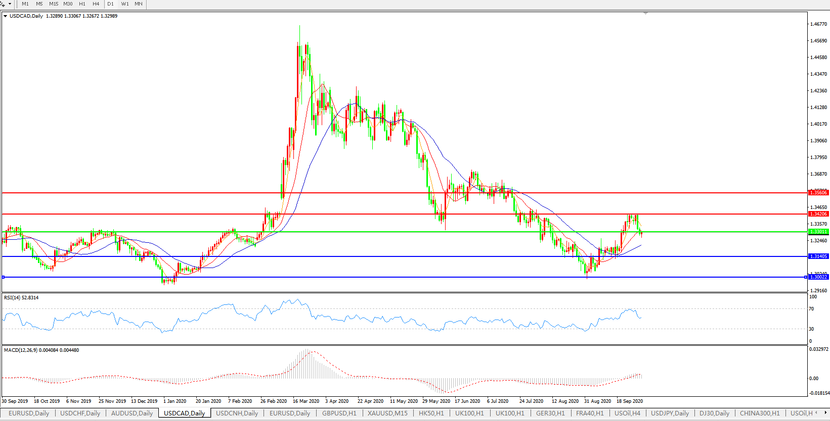 美元兑加元USDCAD 日线图:
