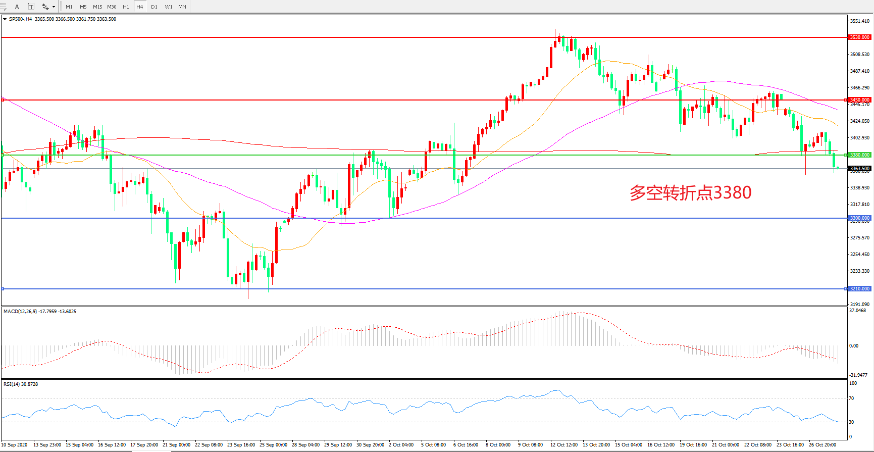 多空转折点:3380.00