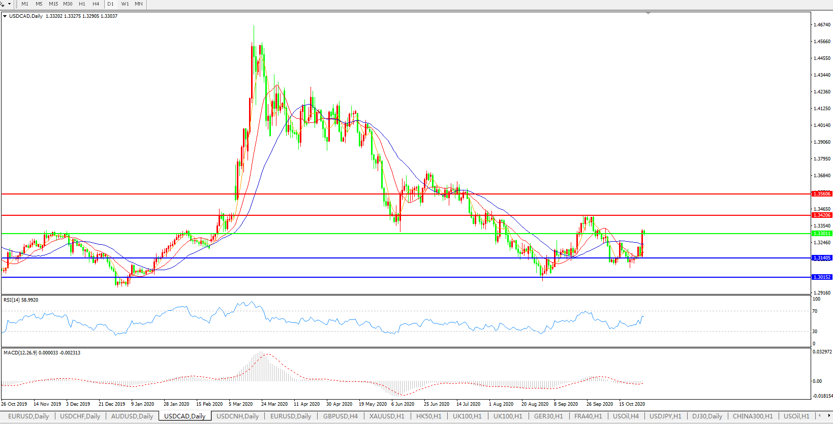 美元兑加元USDCAD    日线图: