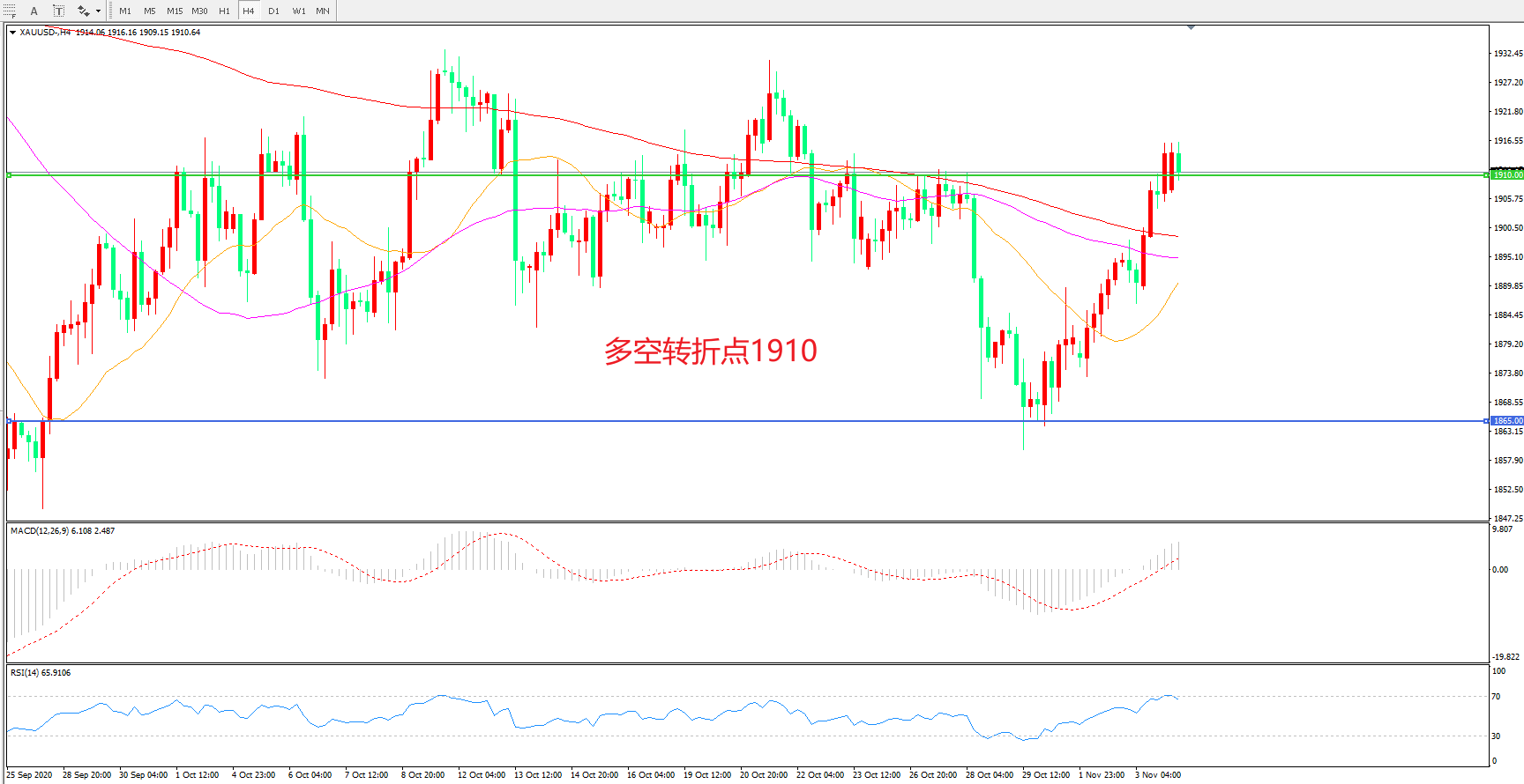 多空转折点:1910.00
