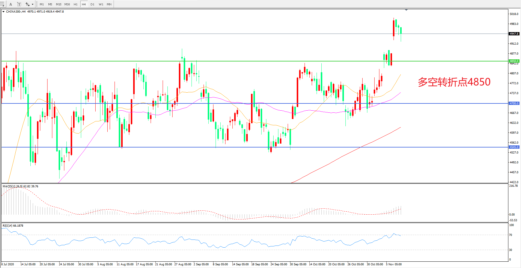 多空转折点:4850.00