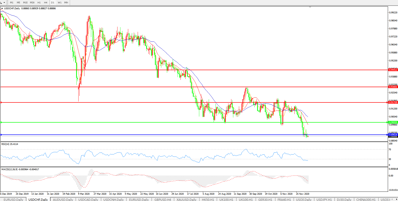 美元兑瑞郎USDCHF 日线图:
