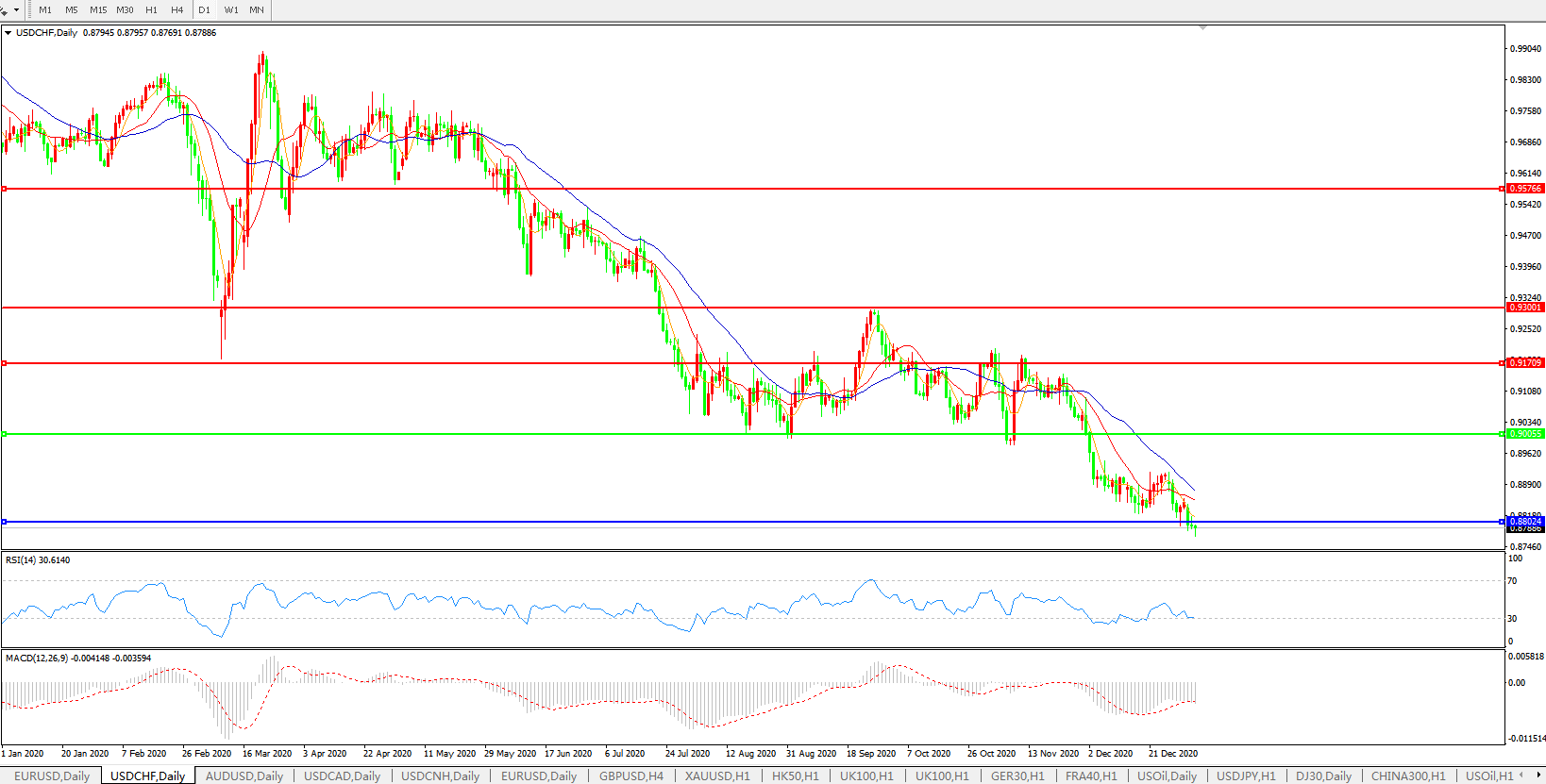 交易策略:0.9000下方看跌,目标0.8800、0.8600