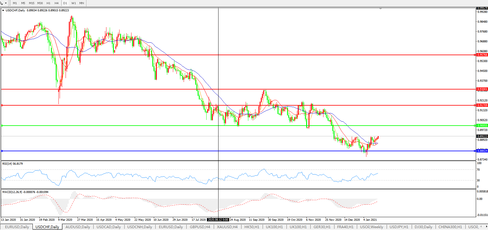 美元兑瑞郎USDCHF    日线图: