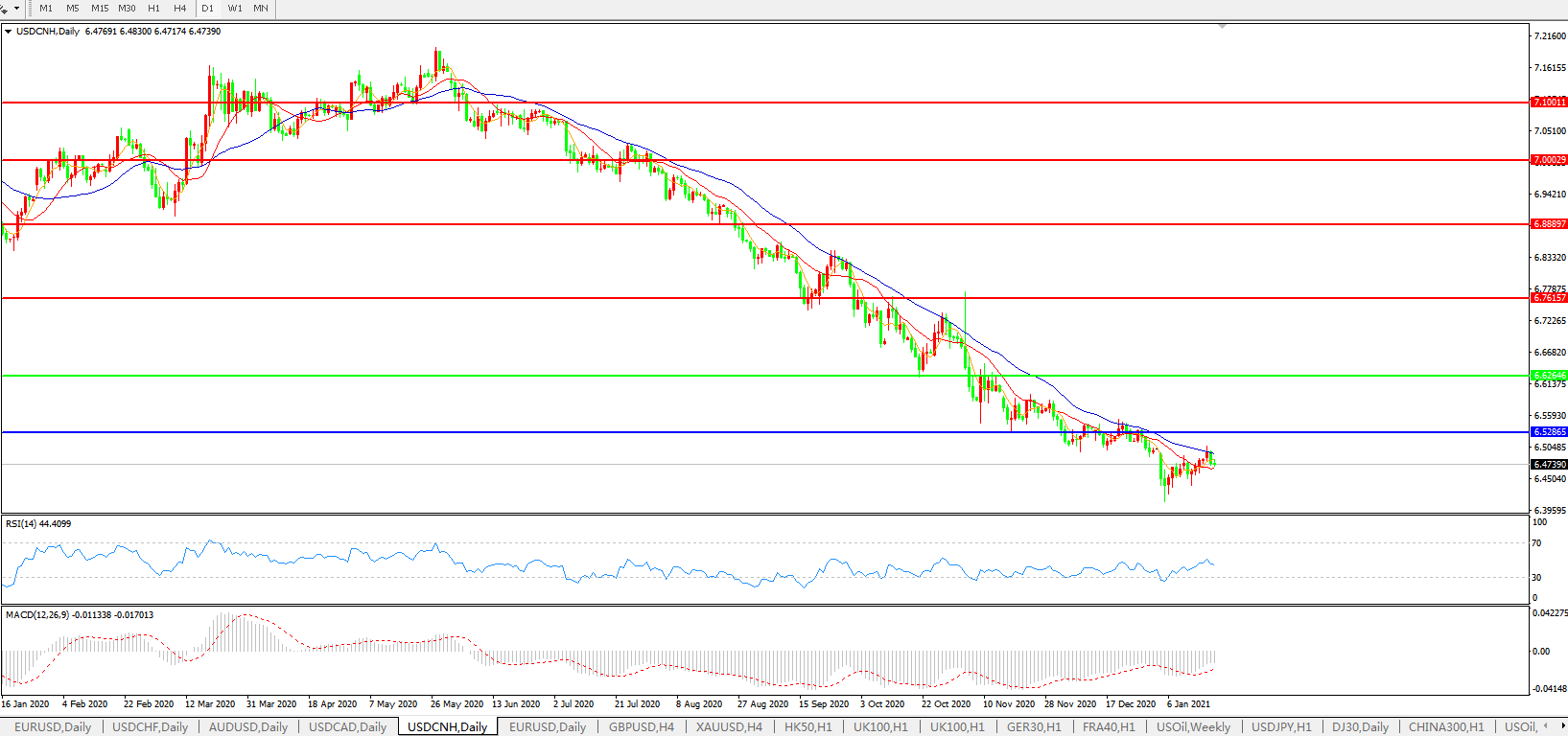 交易策略: 在6.6265之下,看跌,目标价位为6.5286,然后为6.3500。