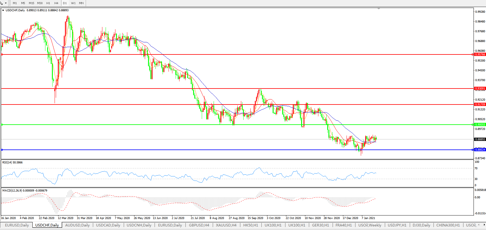 美元兑瑞郎USDCHF    日线图: