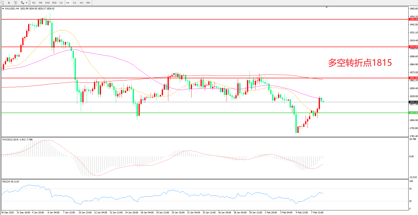 多空转折点:1815.00
