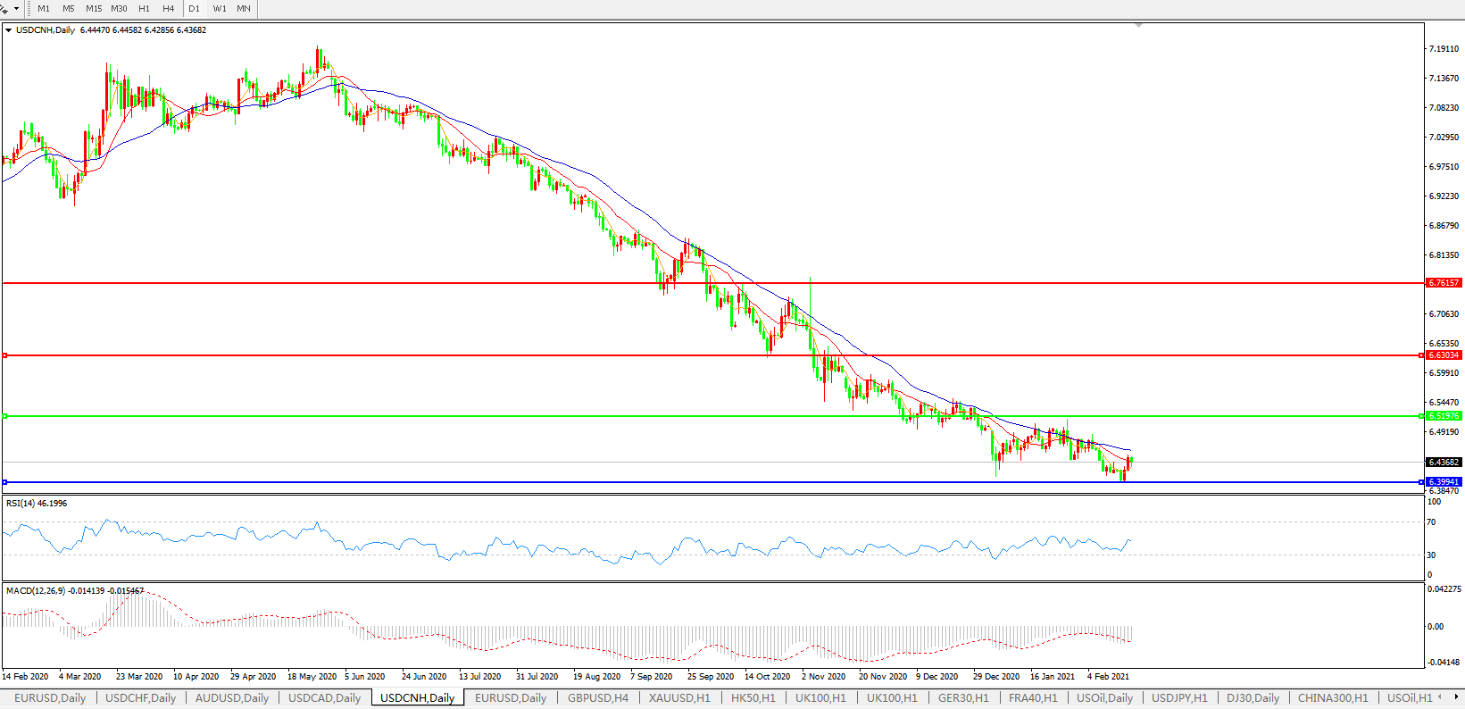 备选策略: 在6.5200之上,看涨,目标价位为6.6300,然后为6.7615。