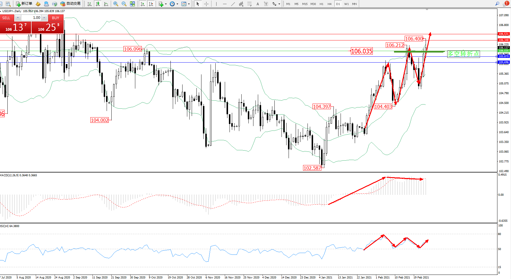 多空转折点:106.035