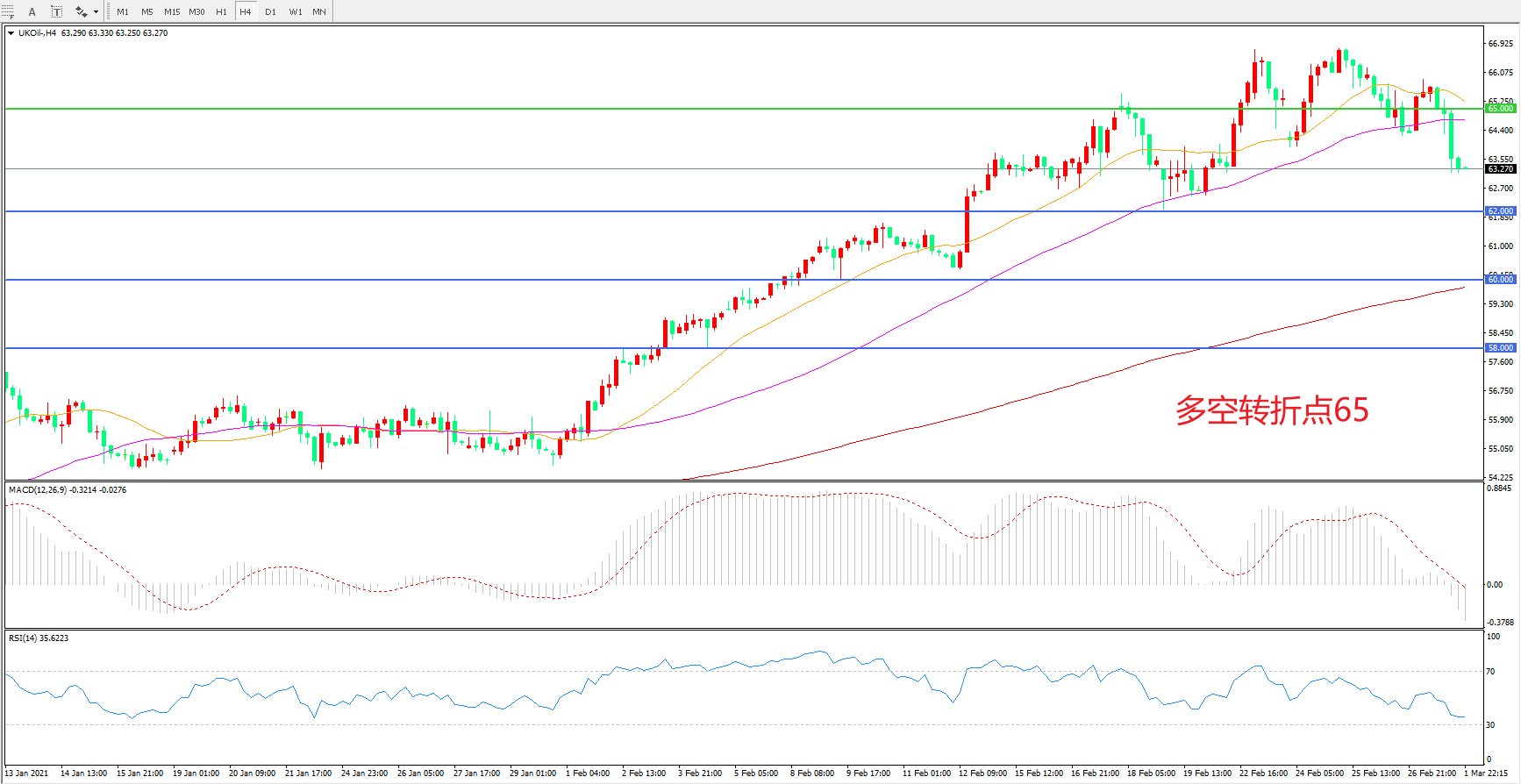 多空转折点:65.00