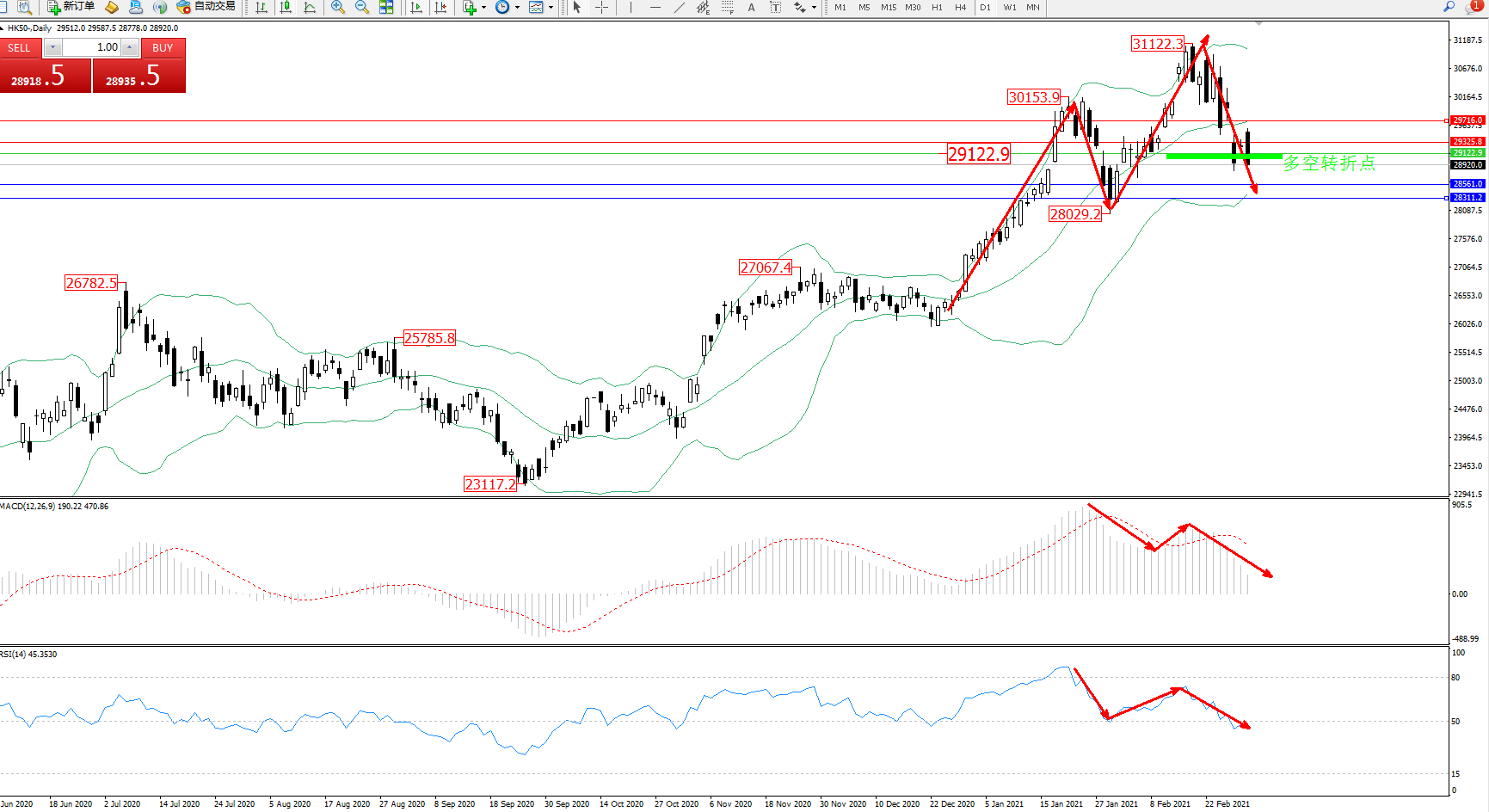 恒指HK50 ——日K线图显示:
