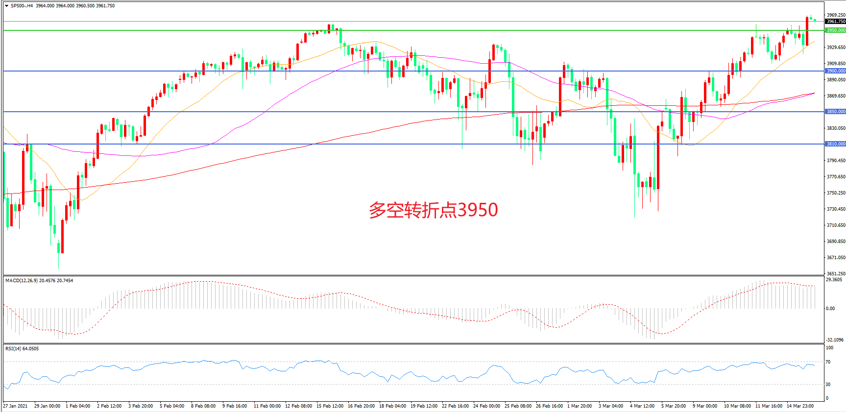 多空转折点:3950.00