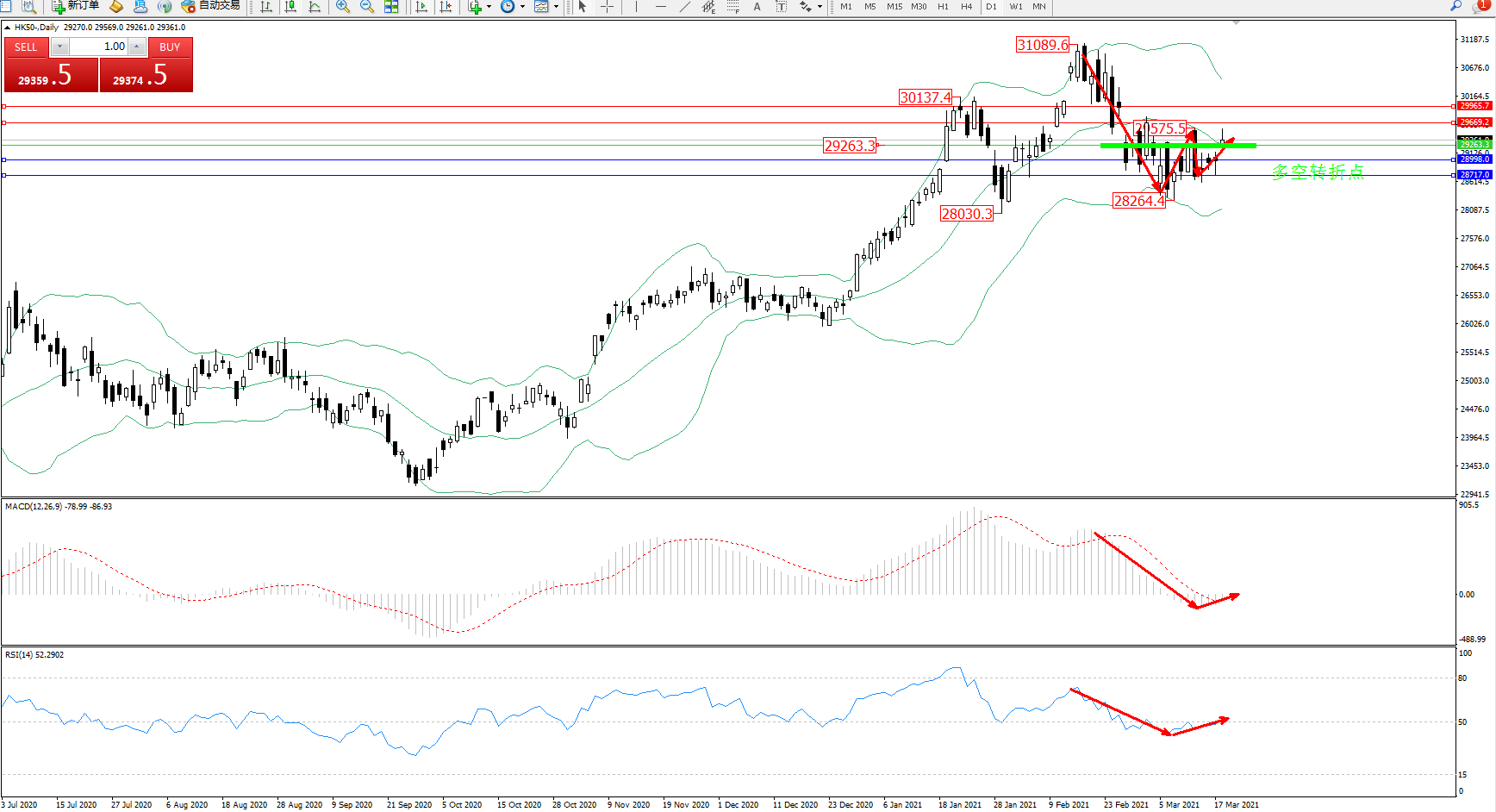 恒指HK50 ——日K线图显示: