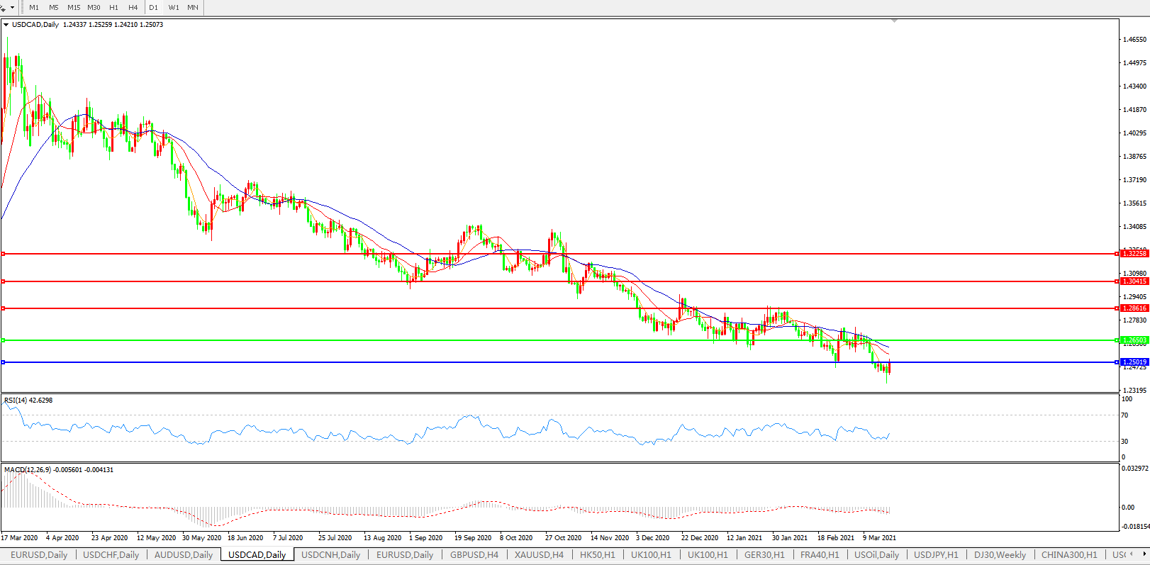 美元兑加元USDCAD 日线图: