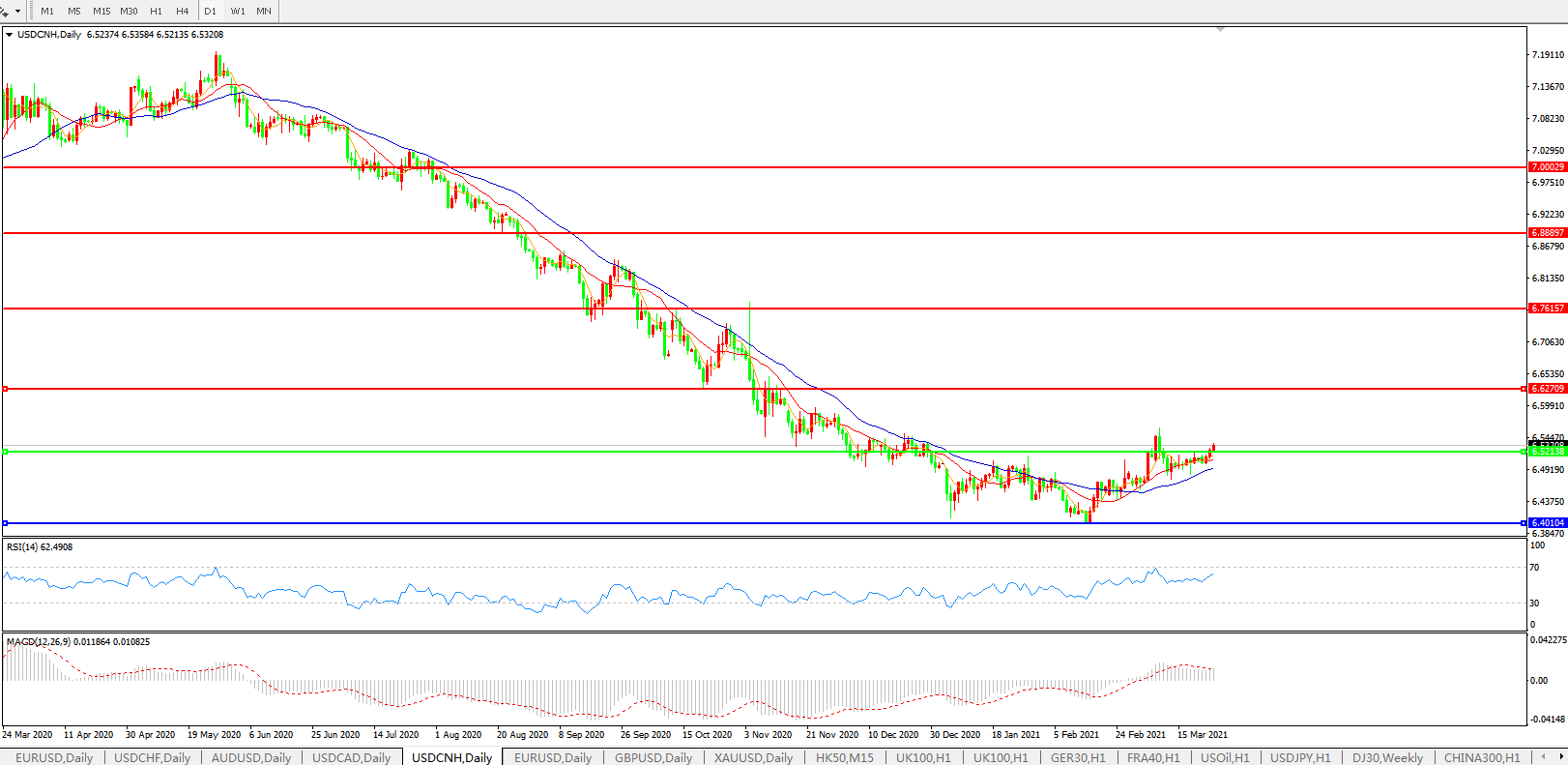 美元兑人民币USDCNH 日线图: