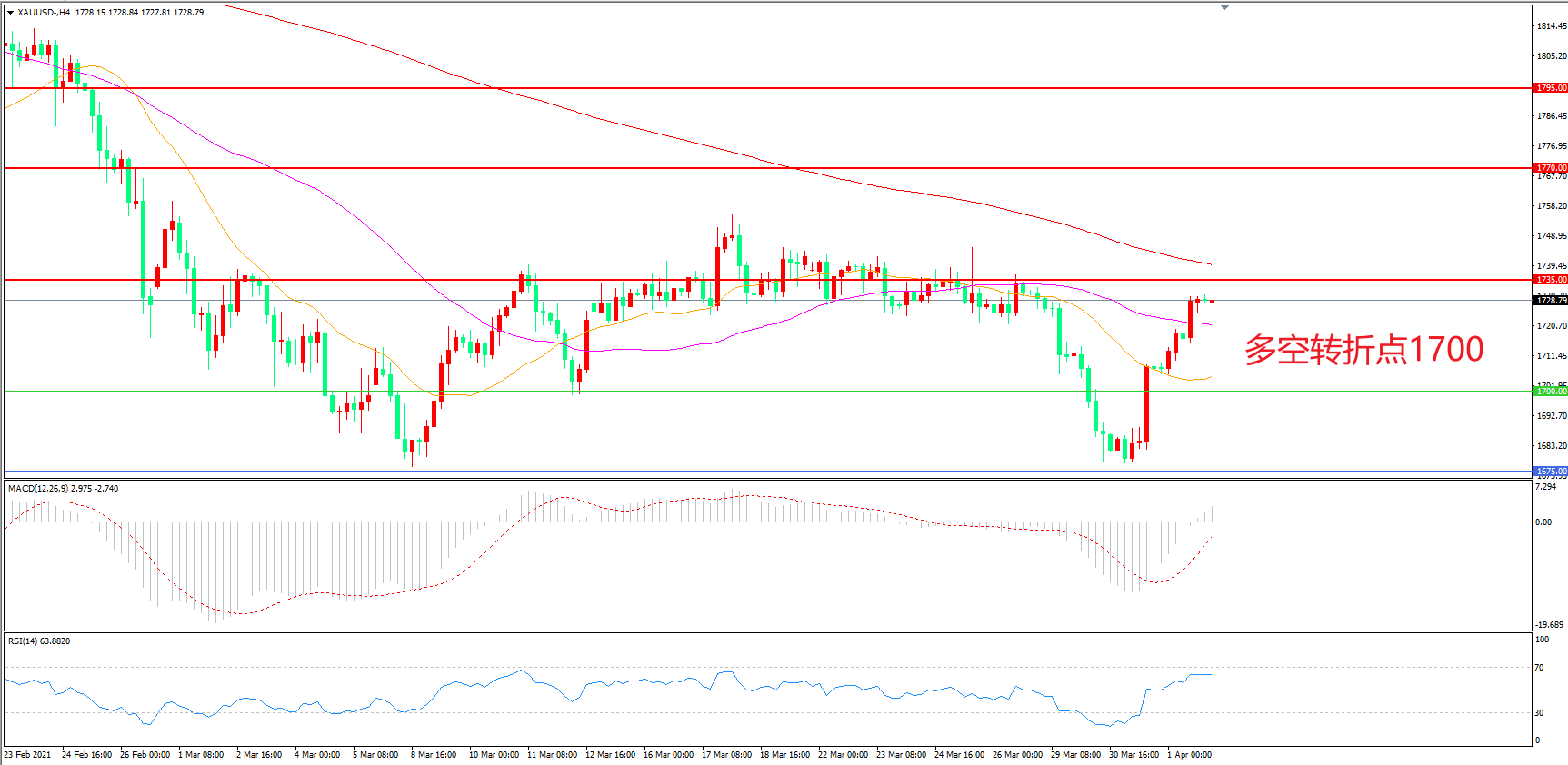 交易策略:在1700.00之上看涨,目标1735.00    1770.00