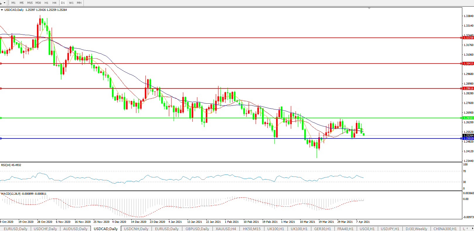 美元兑加元USDCAD 日线图:
