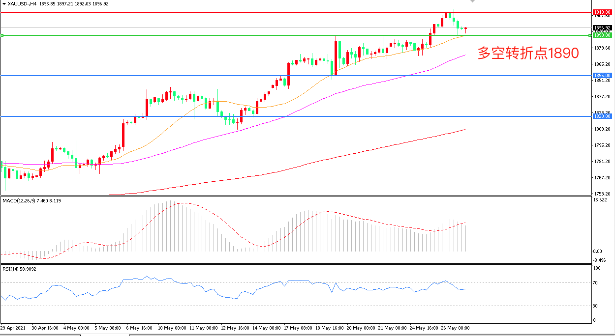 交易策略:在1890.00之上看涨,目标1910.00 1945.00