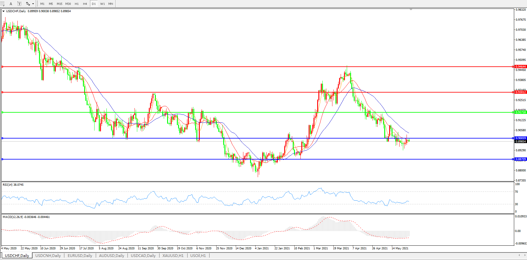 美元兑瑞郎USDCHF    日线图:
