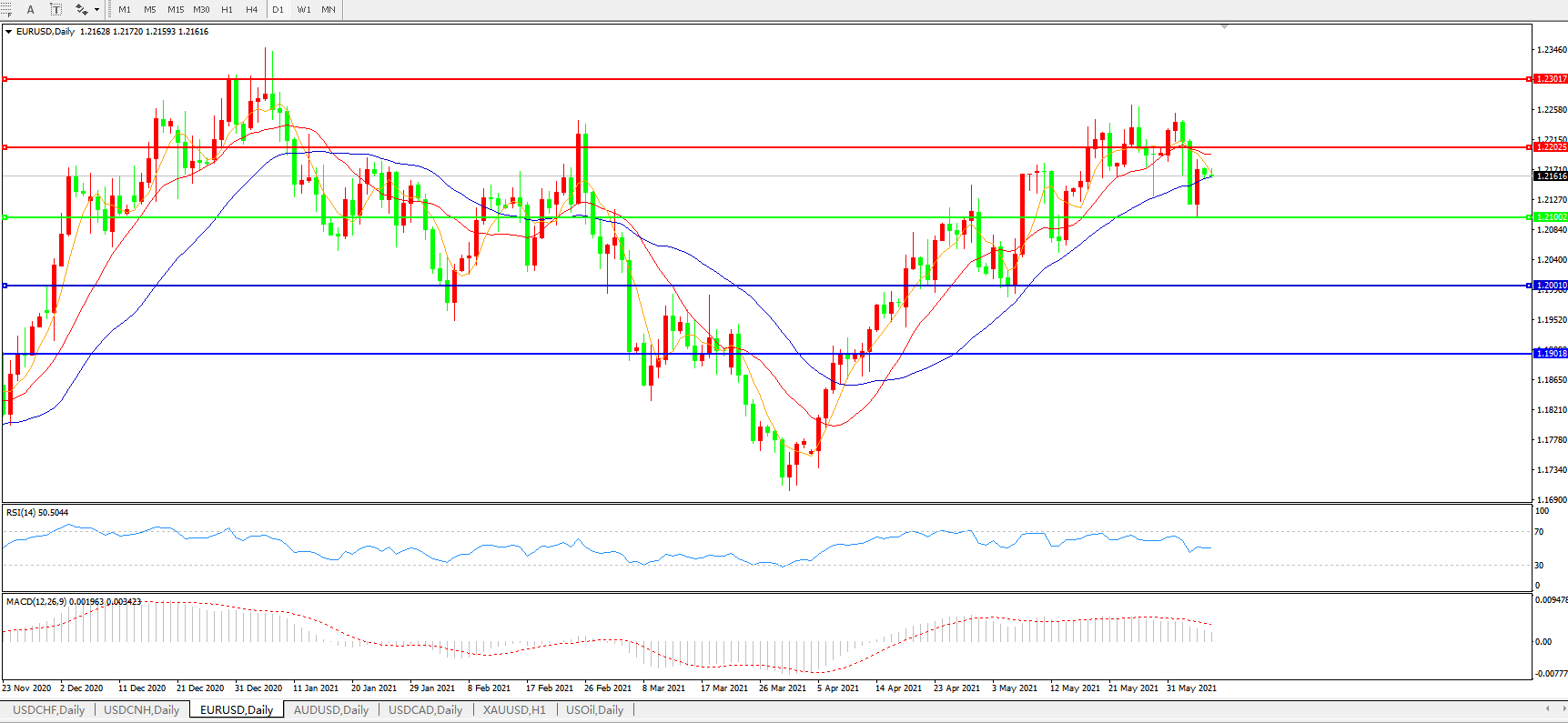 欧元兑美元EURUSD   日线图: