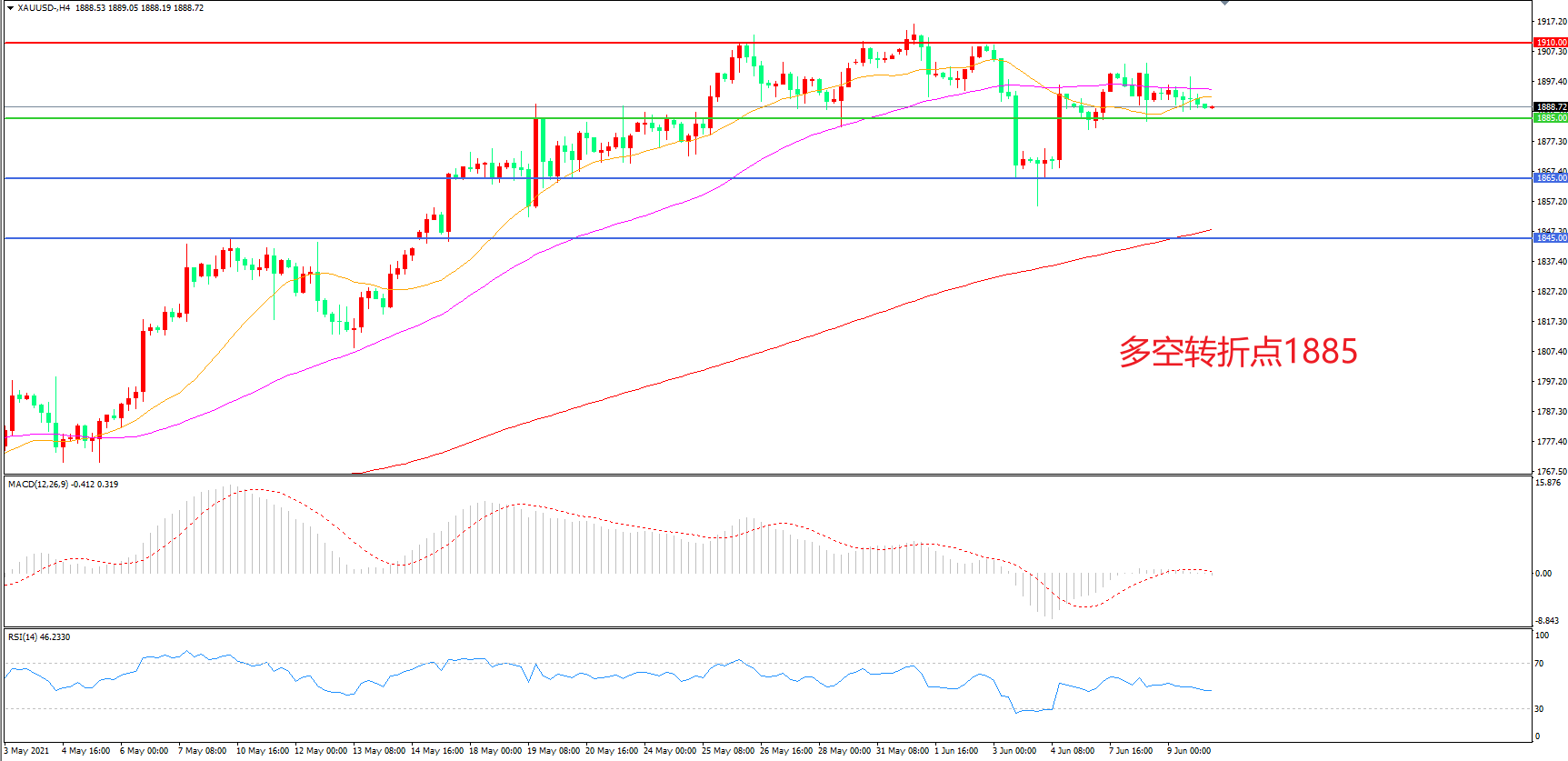 交易策略:在1885.00之上看涨,目标1910.00 1935.00