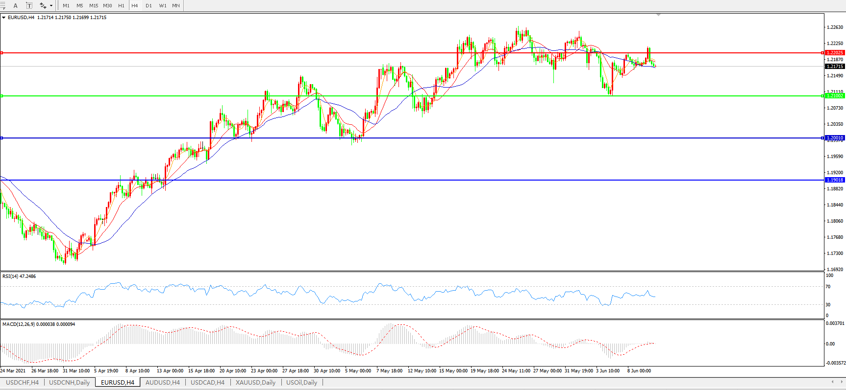 欧元兑美元EURUSD 4小时图: