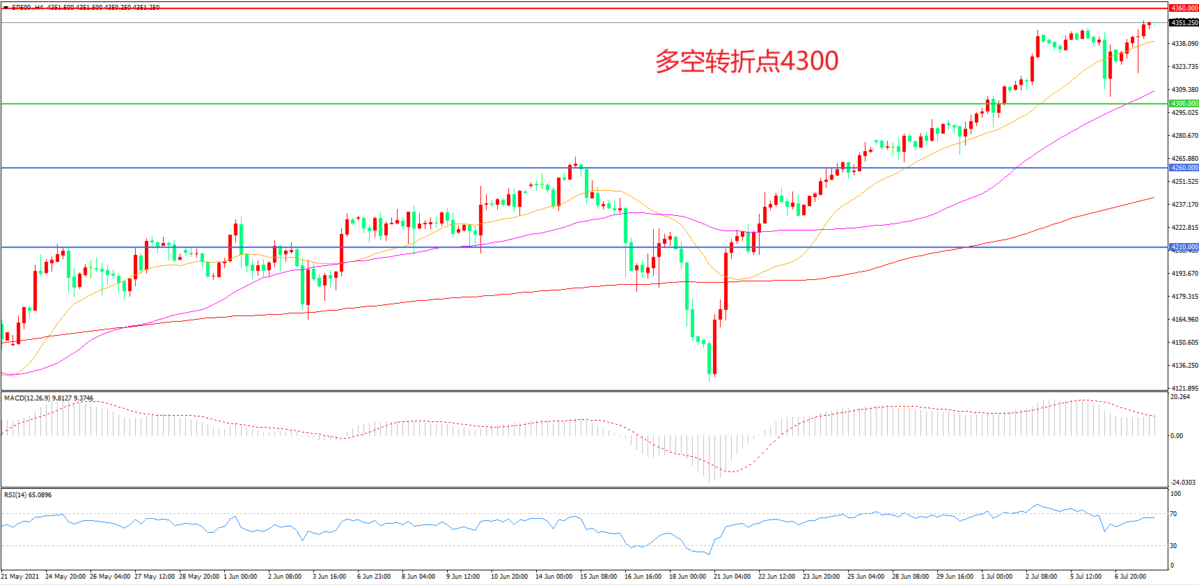 交易策略:在4300.00之上看涨,目标4360.00 4430.00