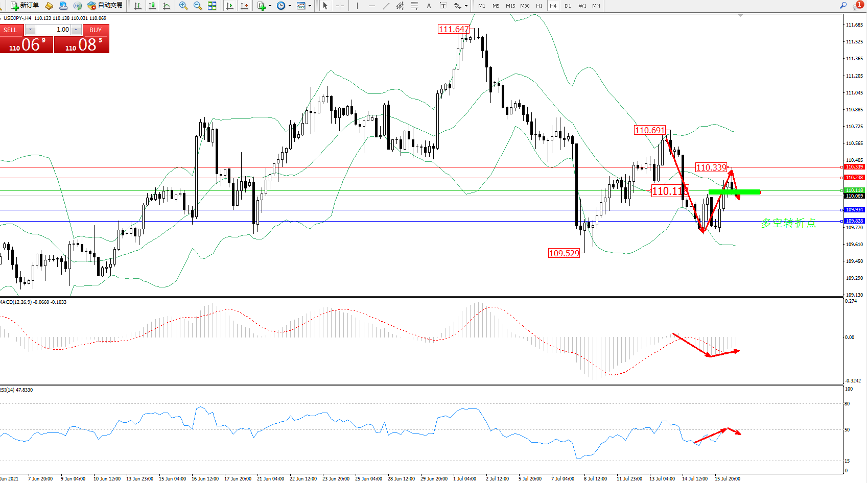 交易策略:110.118下方看跌,目标109.934、109.828