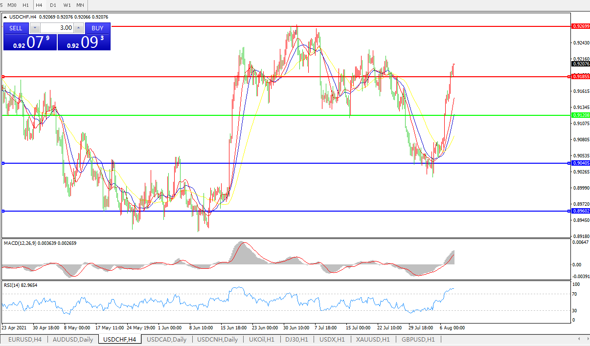 交易策略:0.9120上方看涨,目标0.9185、0.9270