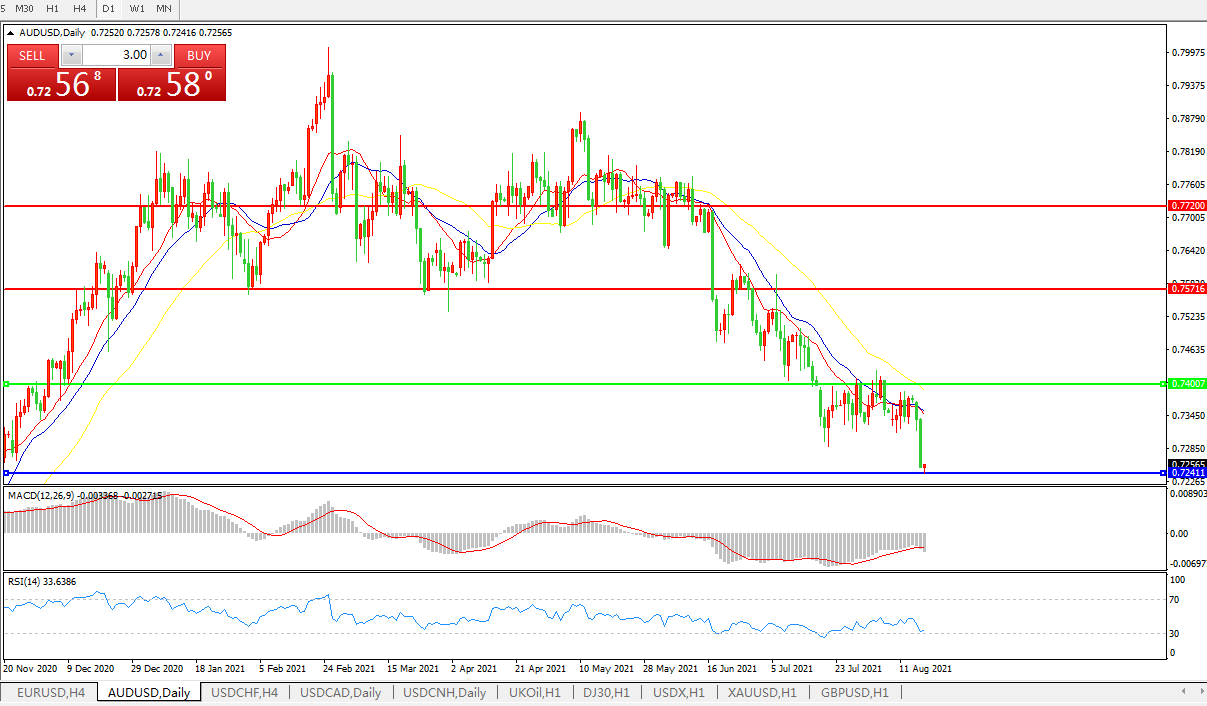 技术面简析:日图均线发散下行,汇价大幅下挫,MACD运行于0轴下方且量能小幅放量,RSI下行,预计汇价大概率将进一步下行。