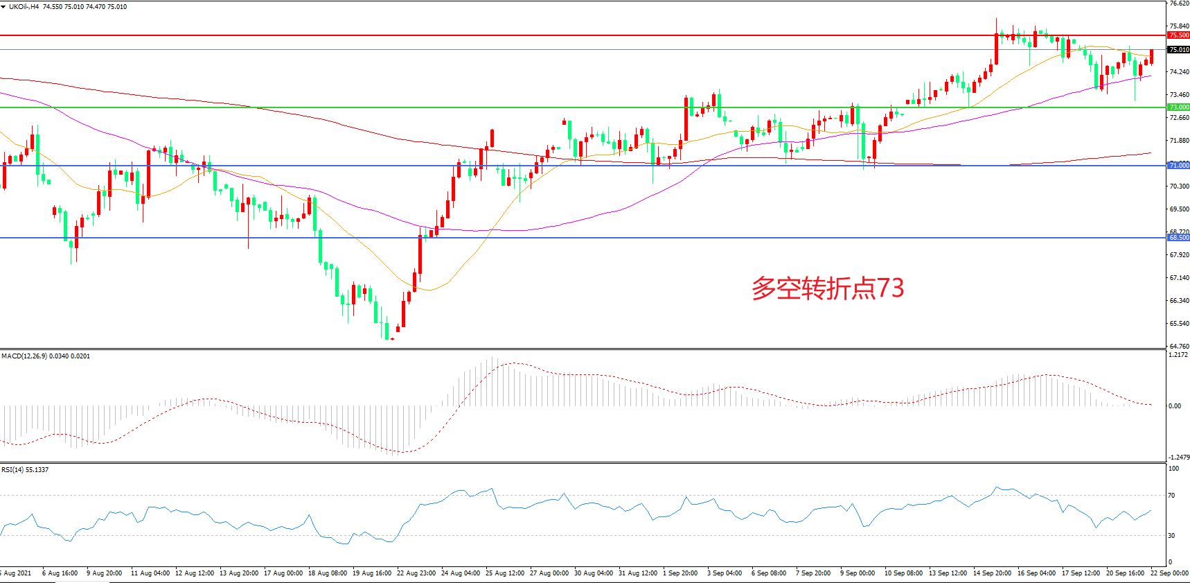 交易策略:在73.00之上看涨,目标75.00 78.00