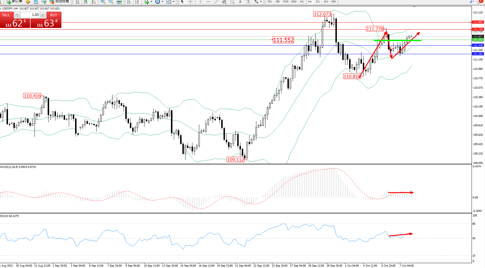交易策略:111.552上方看涨,目标111.760、111.905