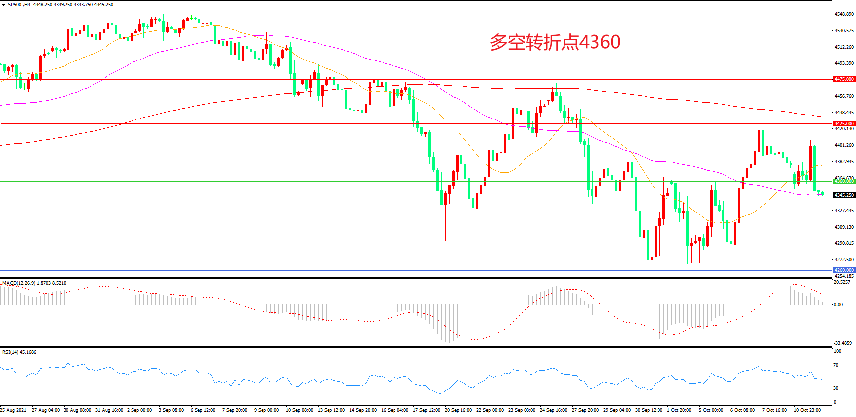 周一(10月11日),因投资者在油价飙升、经济忧虑和即将公布的主要第三季度财报等因素的影响下进行权衡,标普500呈现冲高回落形态,收报4346点。市场预计标准普尔500指数成分股公司第三季度的利润将同比增长29.6%,但对于那些担心供应中断和通胀压力对美国企业造成影响的投资者来说,企业业绩正变得至关重要,并可能导致美国股市在经历了9月的震荡后出现更大波动。
