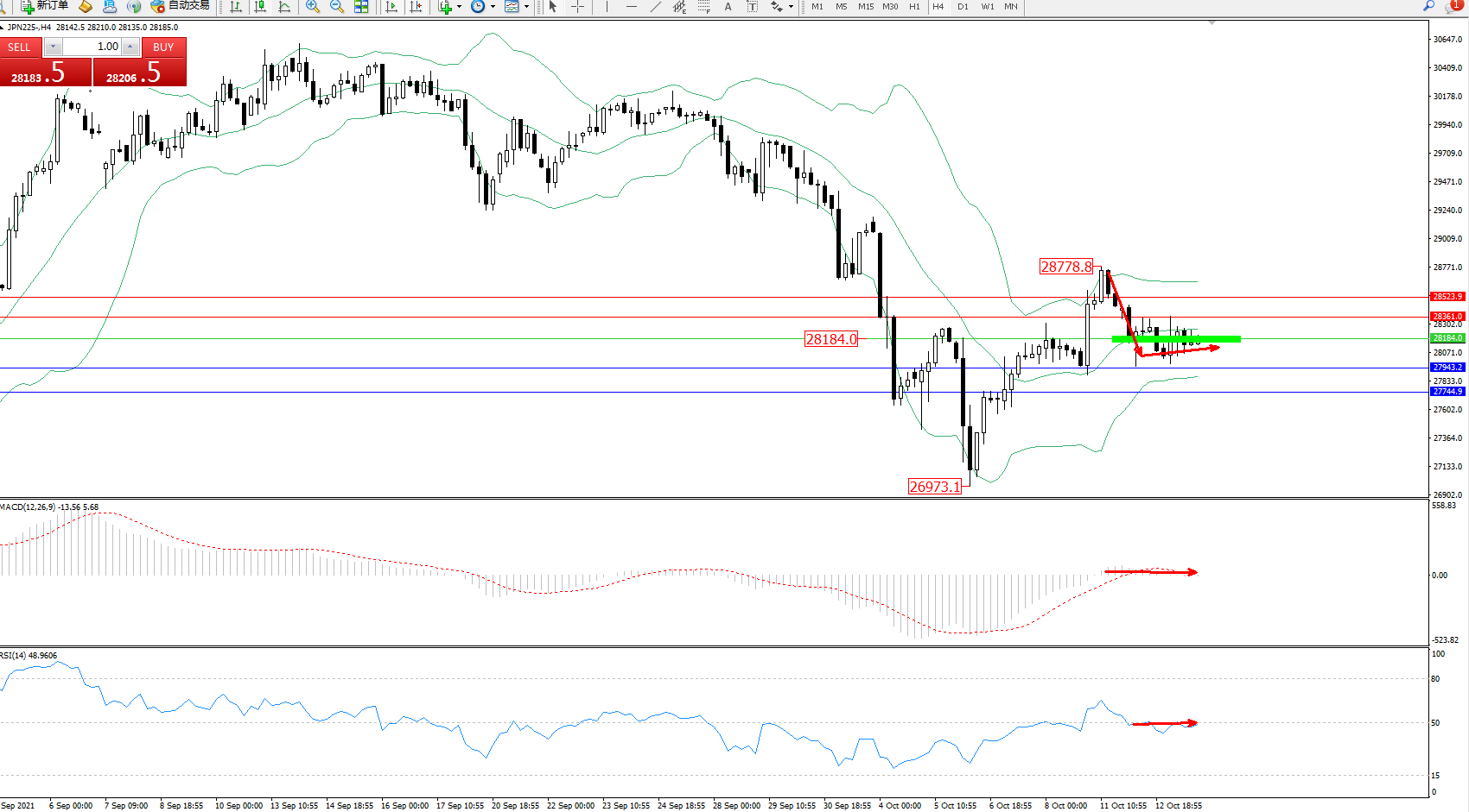 备选策略:28184上方看涨,目标28361、28523