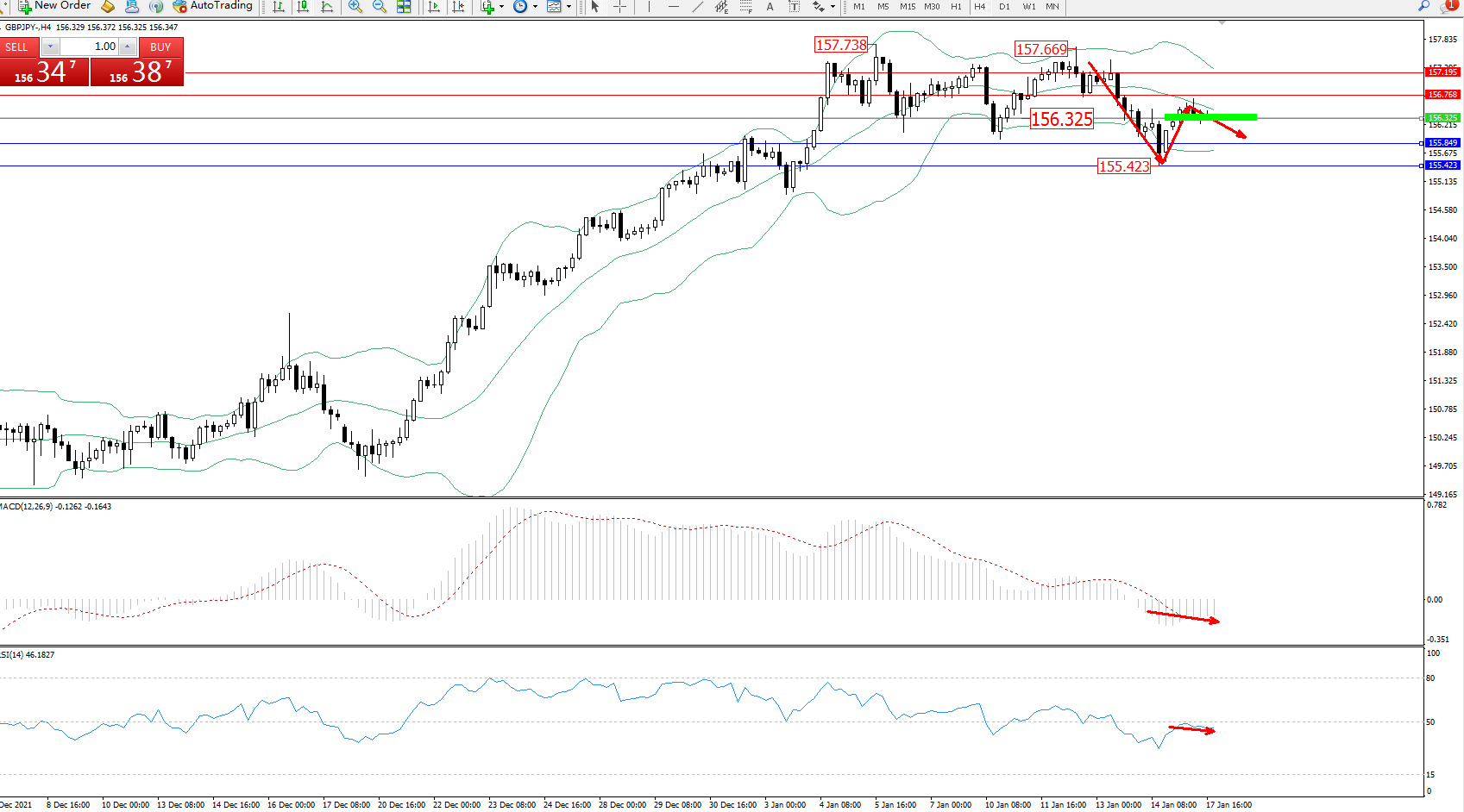 交易策略:156.325下方看跌,目标155.849、155.423