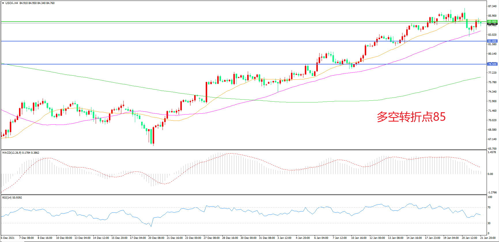 多空转折点:85.00