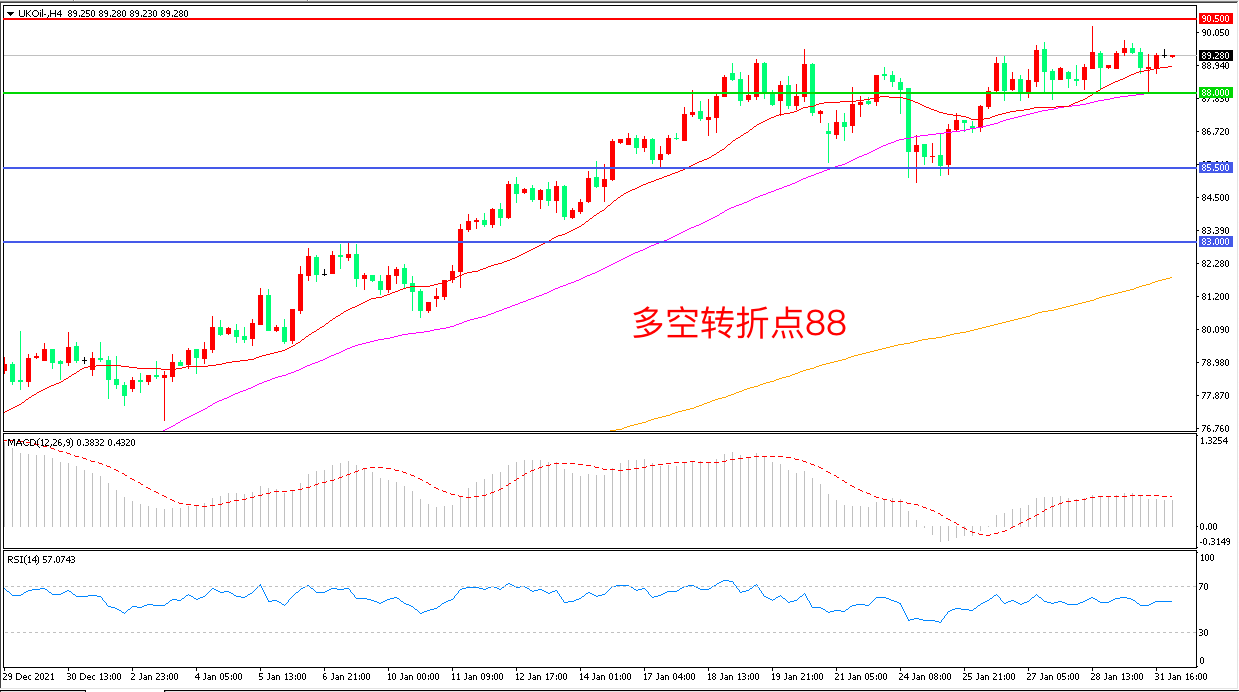 交易策略:在88.00之上看涨,目标90.50 93.00