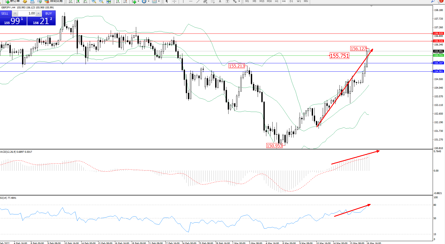 交易策略:155.751上方看涨,目标156.516、156.920