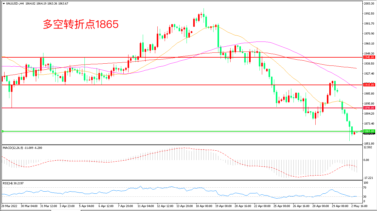 交易策略:在1865.00之下看跌,目标1840.00 1810.00
