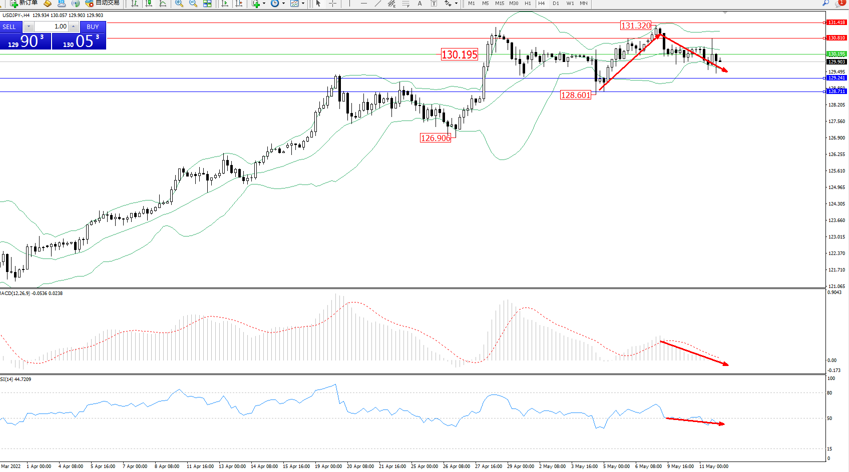 交易策略:130.195下方看跌,目标129.241、128.711