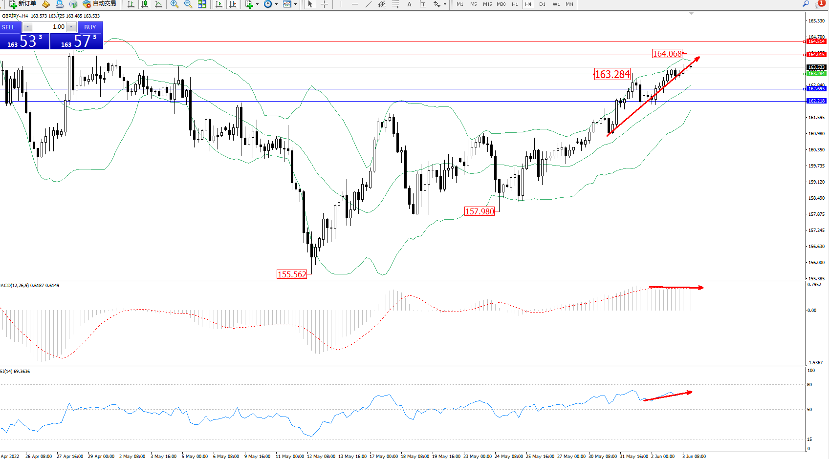 技术点评:多头动力延续布林带指标通道中上轨区间持续震荡上扬,高位抵达164.068附近节点后震荡,短期多头拉升走势或将延续,布林带指标呈上行趋势走势态势良好,MACD指标处于多头区域高位维持整理平移,RSI指标处于多头区域维持弱势缓慢上移中;