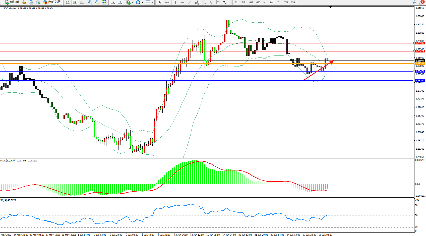 交易策略:1.28782上方看涨,目标1.29274、1.029595