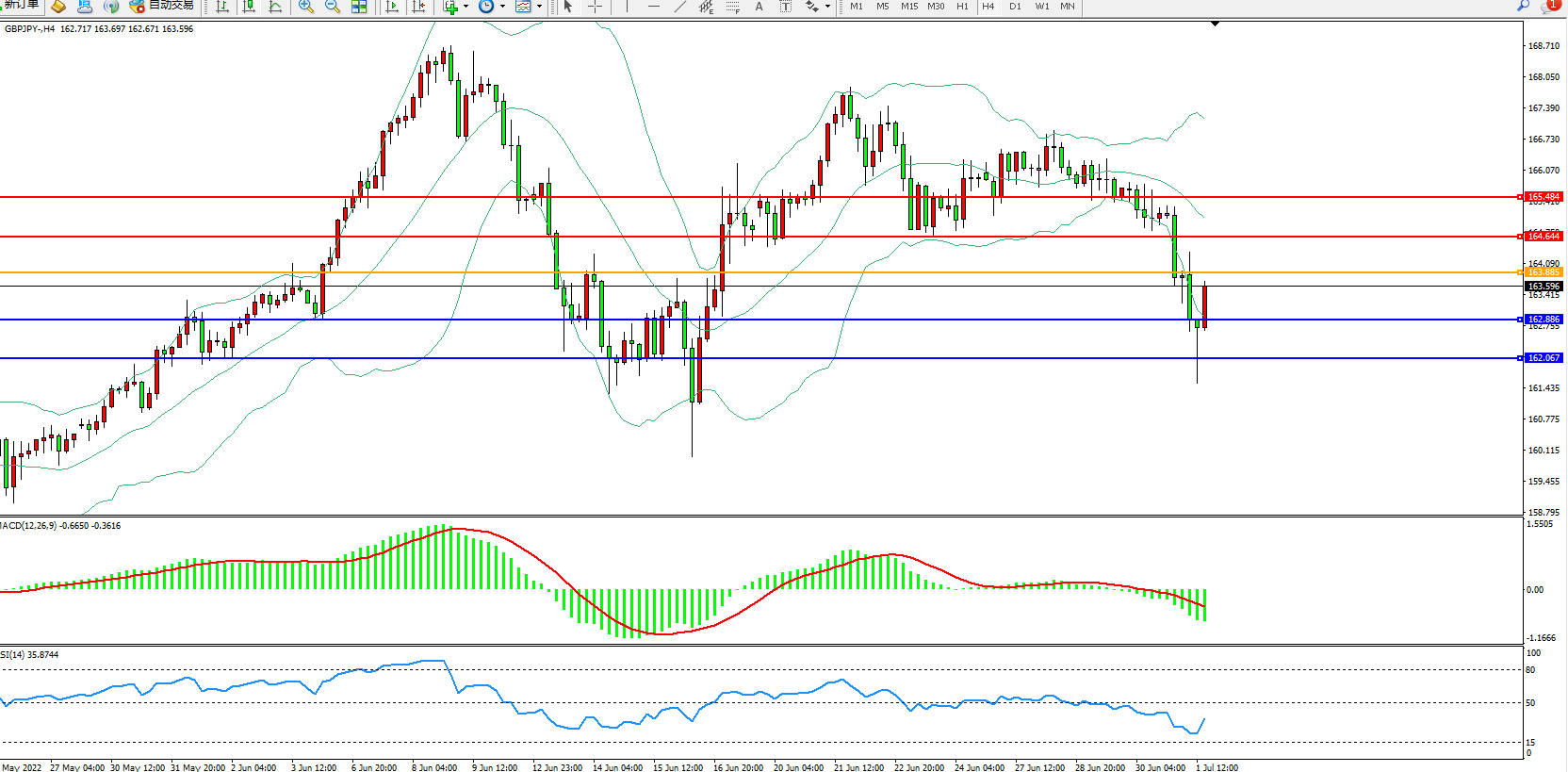 交易策略:163.885下方看跌,目标162.886、162.067