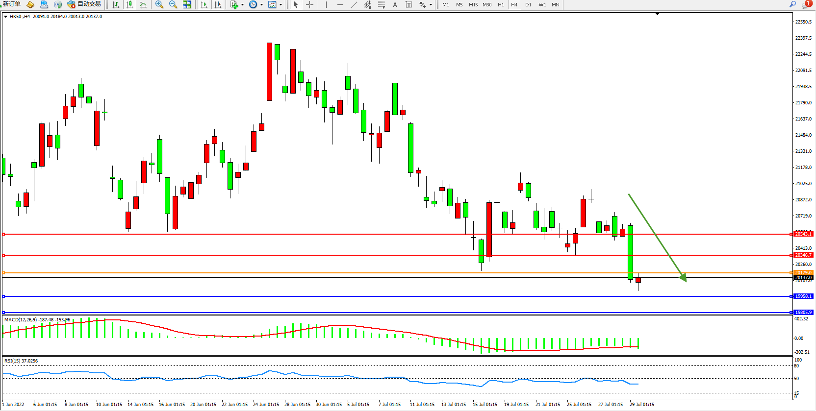 恒指HK50 4小时图