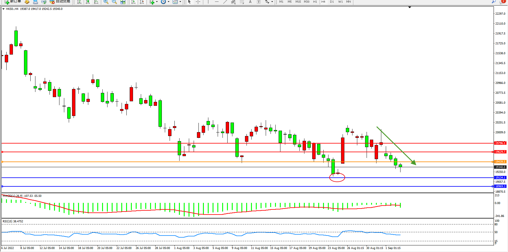 恒指HK50 4小时图